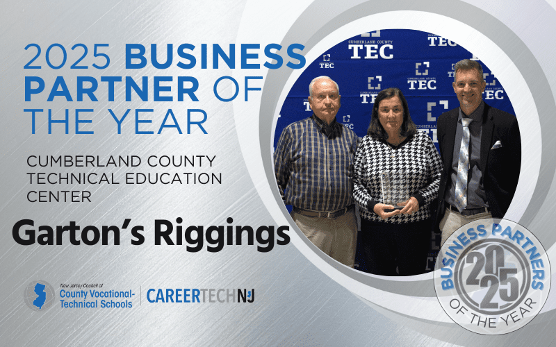 Cumberland County Technical Education Center (CCTEC) has developed a partnership with Garton’s Rigging, located in Vineland, that exemplifies a key strength of career and technical education: presenting real-world learning opportunities with industry involvement. Garton’s has provided CCTEC Construction and Automotive Technology students with firsthand experiences that promote skills and knowledge in the technical, safety and teamwork aspects of the rigging and heavy-equipment industries. CCTEC recognizes the support Garton’s Rigging offers and has named the company its 2025 Business Partner of the Year.