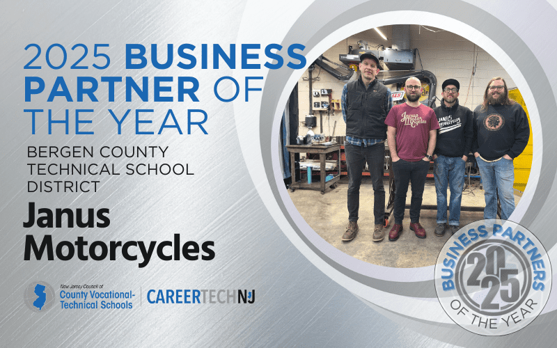 Automotive and Engineering Design students at Bergen County Technical High School, part of Bergen County Technical Schools (BCTS), had the opportunity to tackle an authentic design challenge presented by Janus Motorcycles. The Indiana-based company’s design team helped facilitate the real-world learning experience and served as a vital resource for BCTS students throughout the challenge. To recognize the company’s commitment to the students’ learning, BCTS has named Janus Motorcycles as its 2025 Business Partner of the Year.